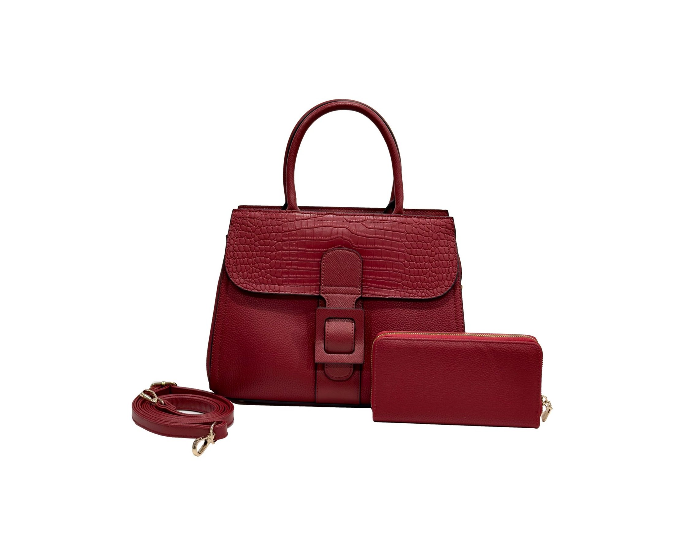 DESCRIPTIONMake a bold statement with this distinctive handbag, designed for the stylish woman. Featuring a sophisticated croc-embossed flap and an eye-catching buckle accent, this handbag embodies modern elegance and urban flair. Perfect for both casual outings and formal occasions, it offers versatile carrying options and a spacious interior for your essentials. Stay on-trend with this fashionable piece that seamlessly blends style and practicality.PRODUCT INFORMATION:Dimensions: (L)12.2" x (W)5.3" x (H)9"